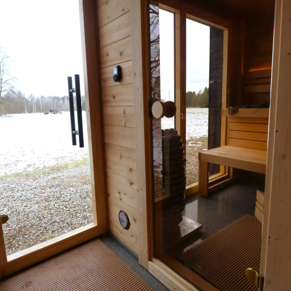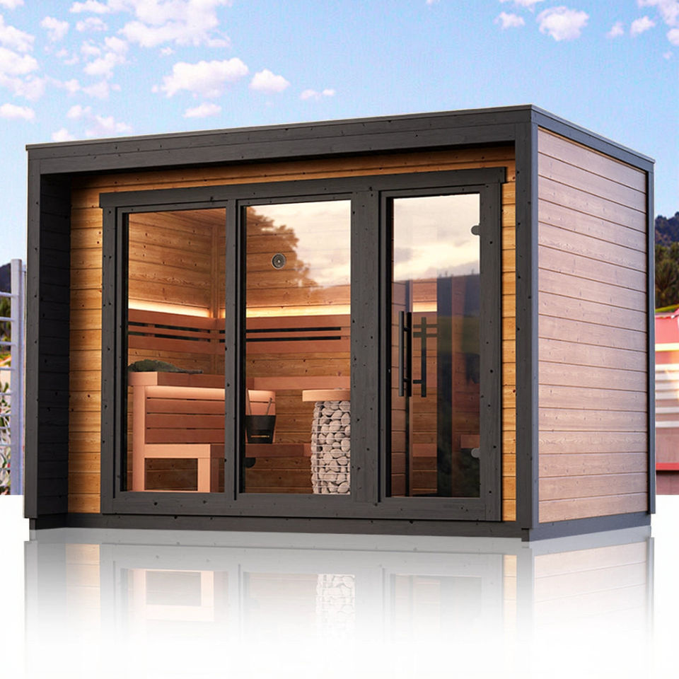 Cabine de sauna de jardin en bois massif de pruche au design moderne avec chauffage électrique à vapeur humide Cuisinière de douche extérieure