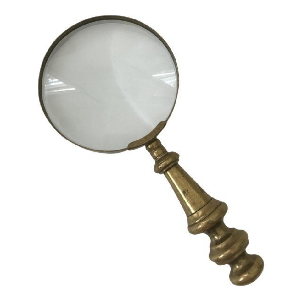 Loupe de lecture portable au design moderne en métal massif avec finition en laiton poli et poignée en cristal fantaisie