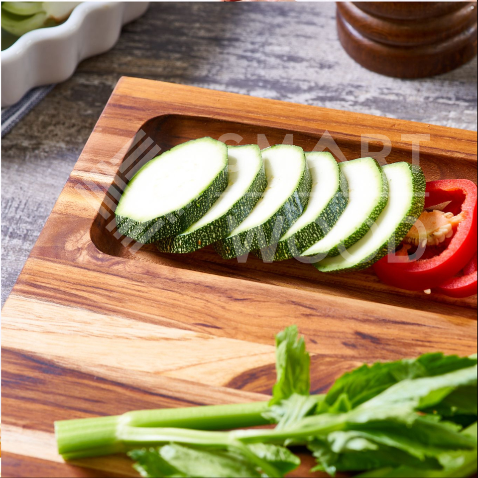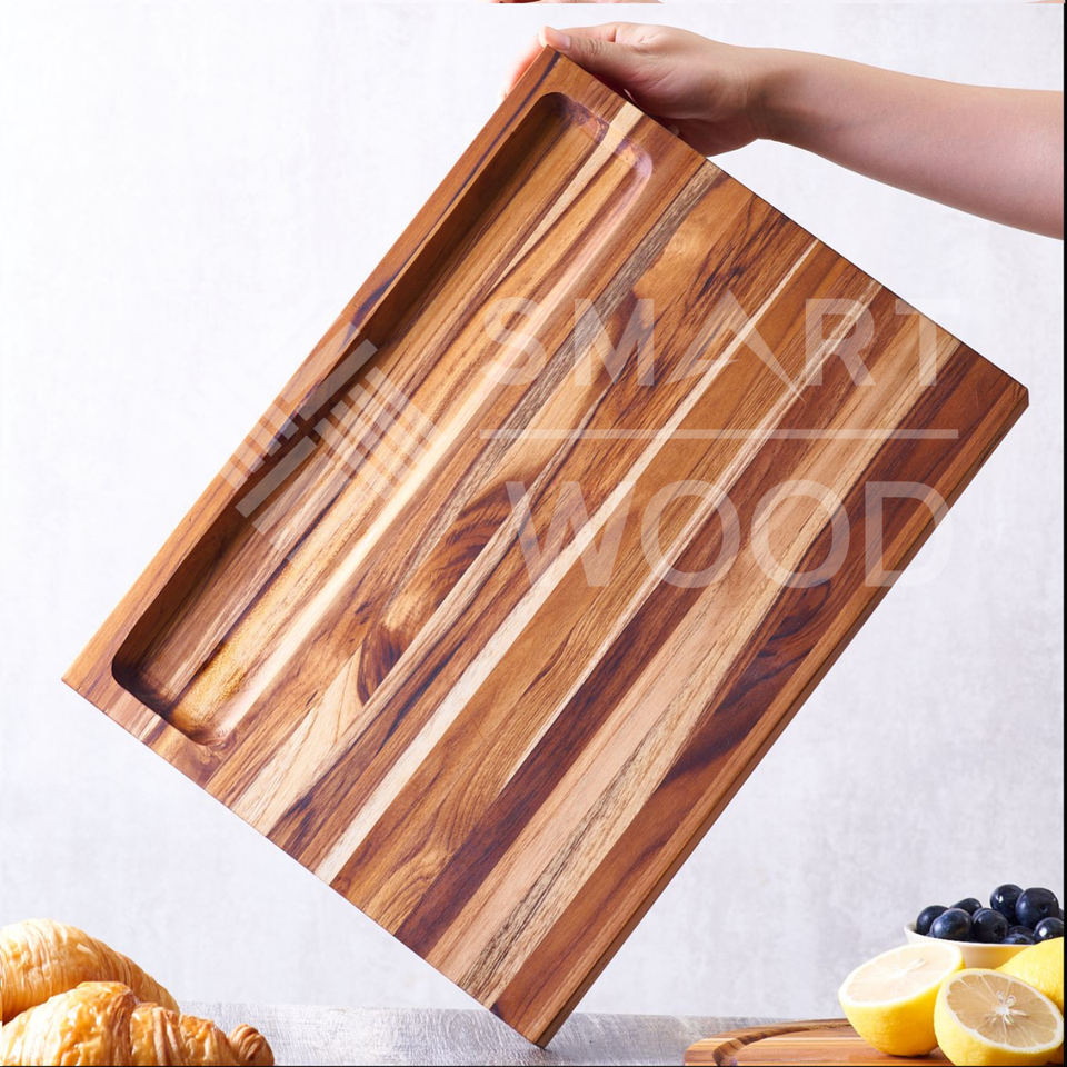 Bloc à découper en teck solide au design moderne pour la cuisine, utilisé sur toute la longueur pour couper les aliments, prix d'usine