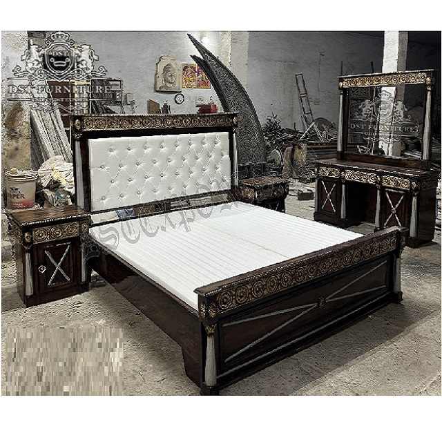 Meubles de chambre à coucher en bois de teck massif au design moderne tabourets de lit réglables pliables ensemble de chambre à coucher de 5 pièces