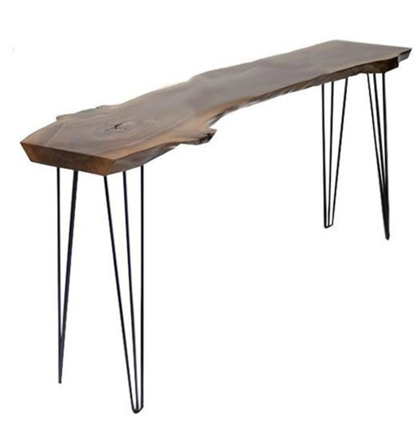 Table console en bois de teck massif au design moderne avec pieds en fer pour salle à manger mobilier de parc de ferme pour hôtels maisons