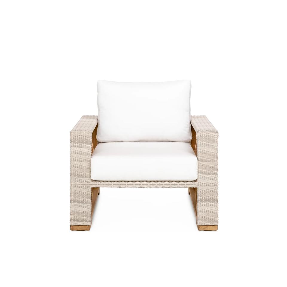 Ensemble de canapé design moderne à structure en bois de teck massif avec coussins anti-solaires en rotin synthétique pour l'intérieur et l'extérieur