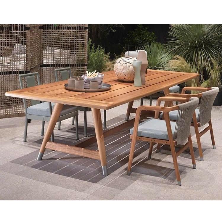 Modern Design Solid Wood Wicker Panel Aluminum Frame Vietnam Origin Outdoor Dining Furniture 6 Seating Capacity for Courtyard
