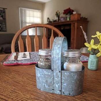 Boîte à outils carrée galvanisée au design moderne avec manche en bois, parfaite pour la maison, les ustensiles de cuisine et le porte-épices en verre.