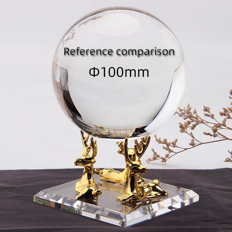 Boule de cristal de cerf horizontale carrée de conception moderne nouvelle base en acrylique avec des sphères originales en verre de jade et de pierre