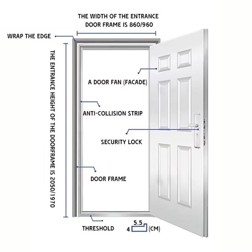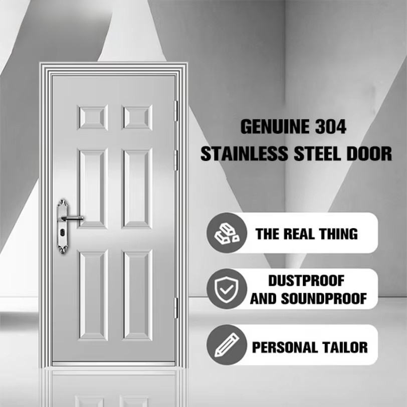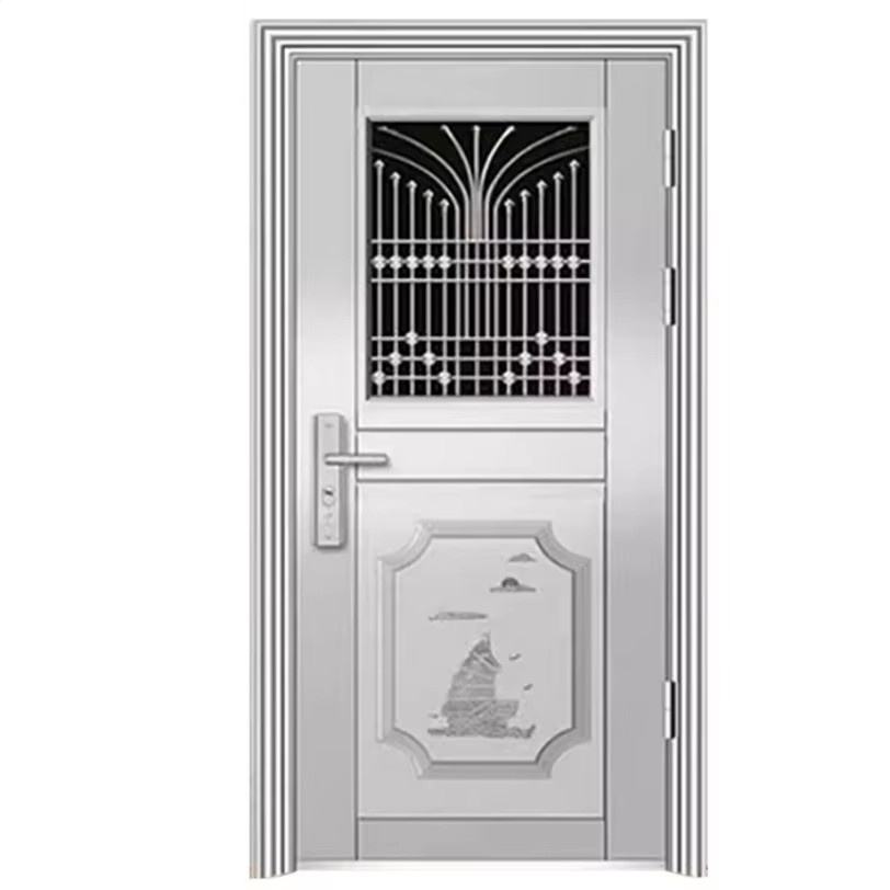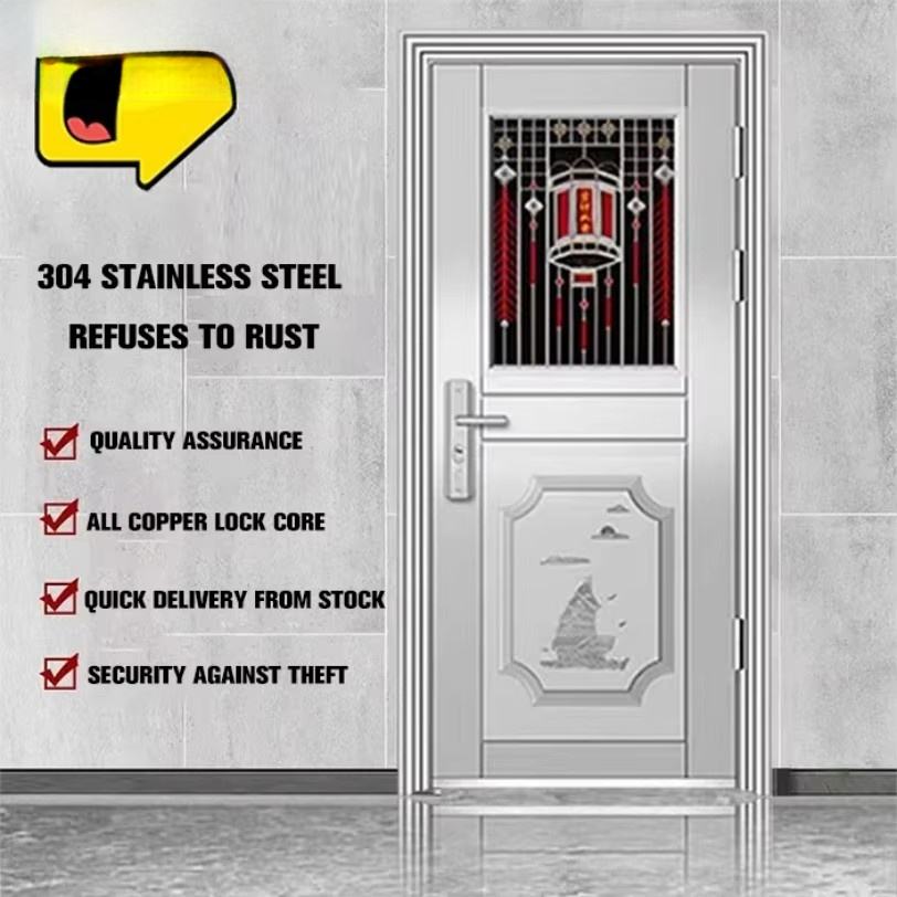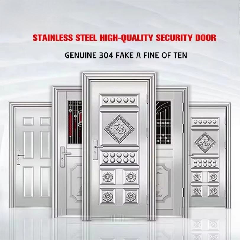 Porte de sécurité en acier inoxydable au design moderne, résistante à la corrosion, à double ouverture, avec fonction antivol pour appartement