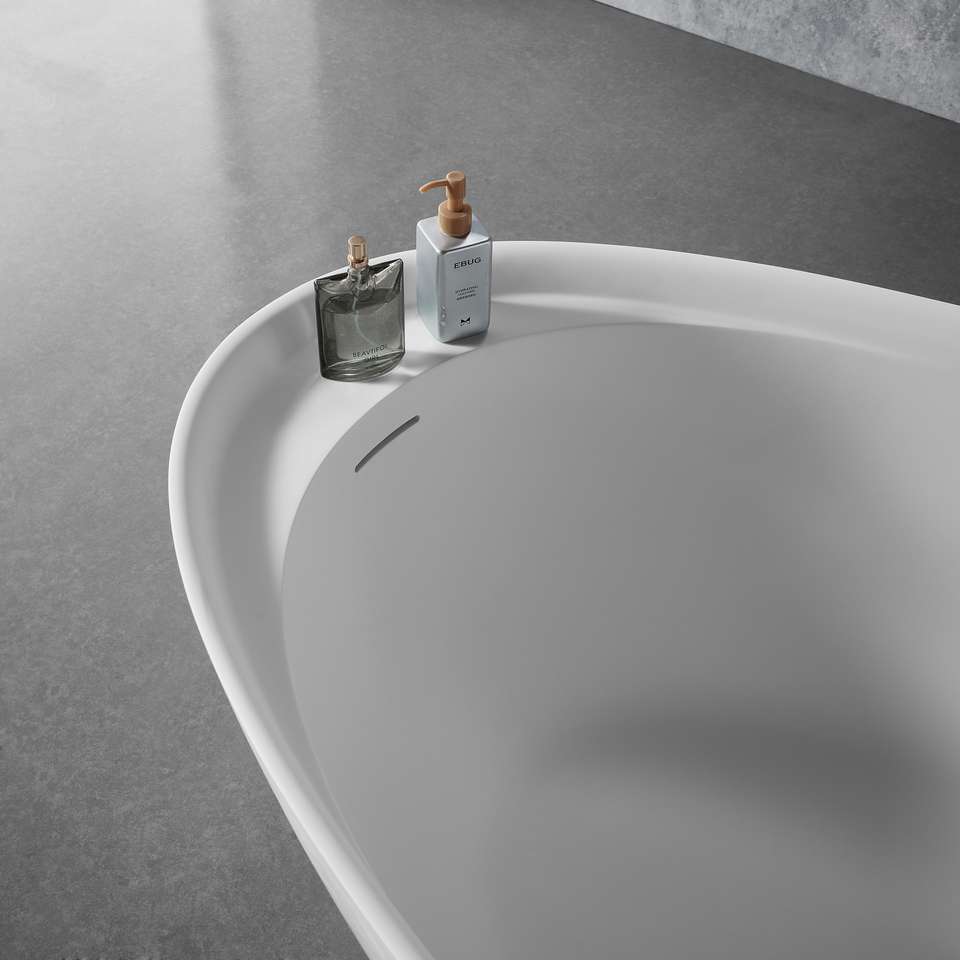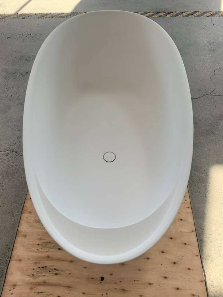Baignoire autoportante en forme d'oeuf en résine de pierre au design moderne Baignoire blanche mate à surface solide pour salle de bain d'hôtel