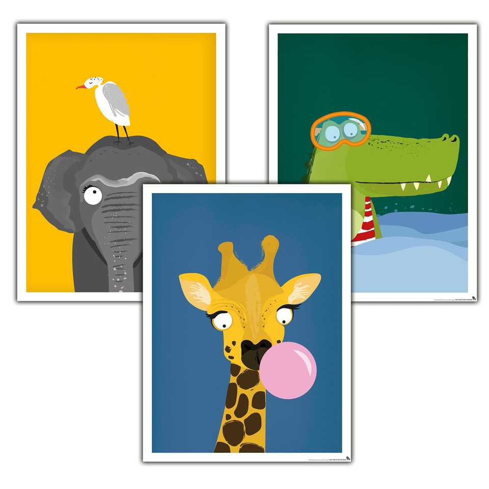 Affiche pour chambre d'enfant style design moderne, ensemble Afrique de 3 affiches 30 x 40 cm
