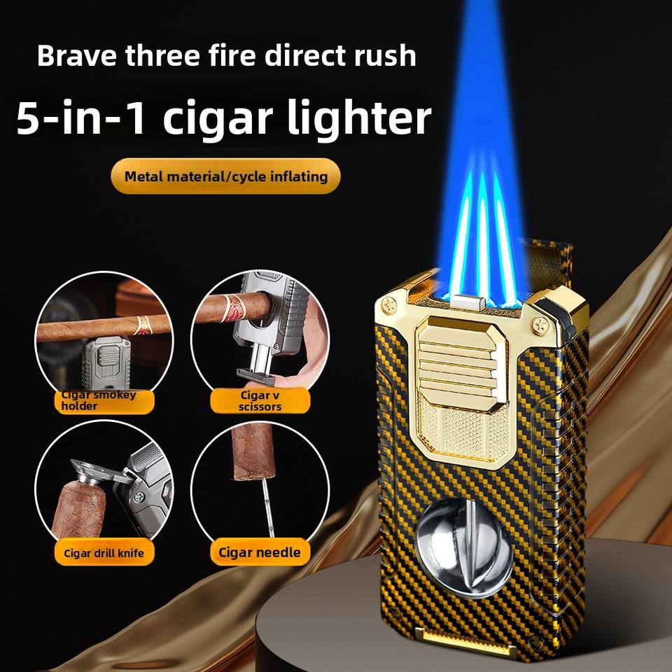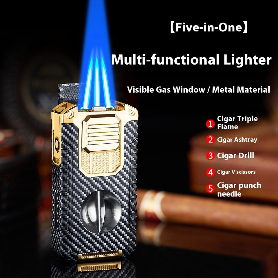 Allume-cigare direct portable cinq-en-un de style design moderne coupe-métal en forme de V intégré carburant butane multifonction créatif
