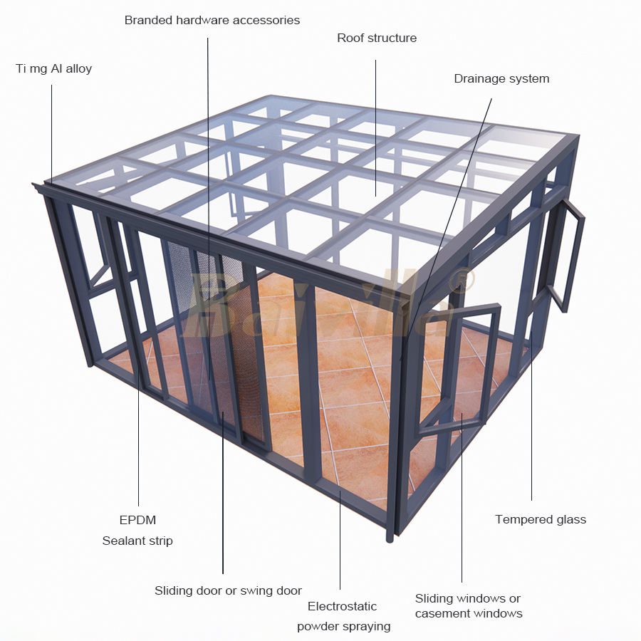 Serre de jardin d'été au design moderne, de qualité supérieure, avec structure en aluminium et verre trempé, directement de l'usine, pour villas