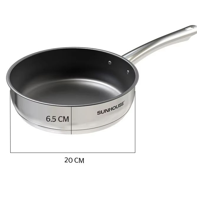 Poêle à frire antiadhésive en acier inoxydable Sunhouse au design moderne à fond en fonte à induction au gaz écologique au meilleur prix