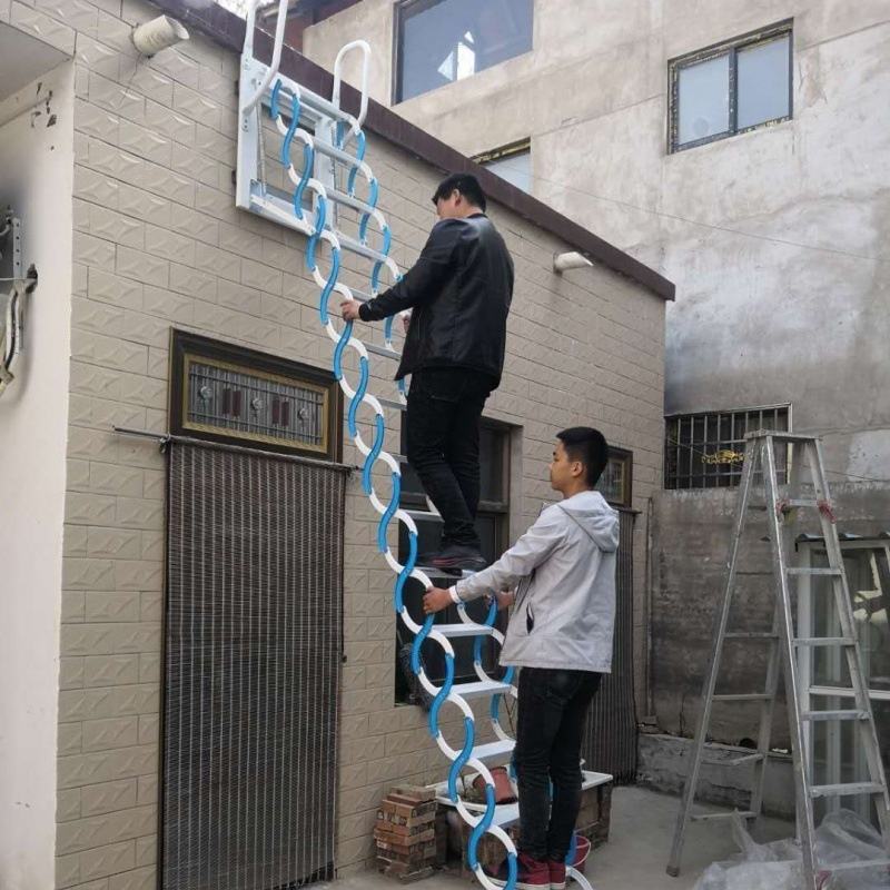 Échelle élévatrice télescopique pliante rétractable au design moderne fixée au mur pour la maison ou l'extérieur