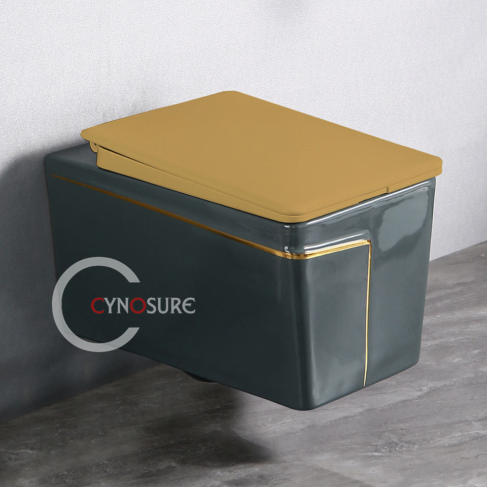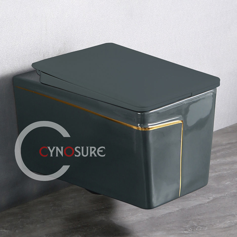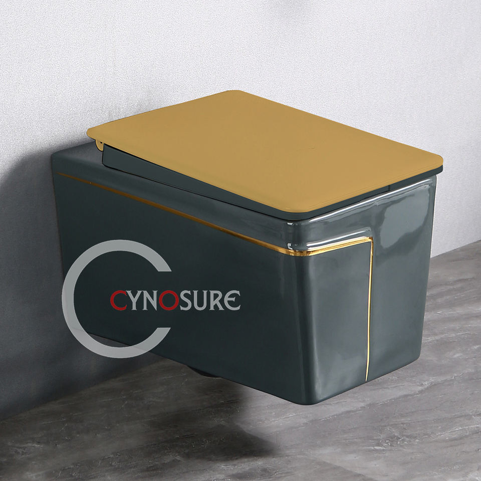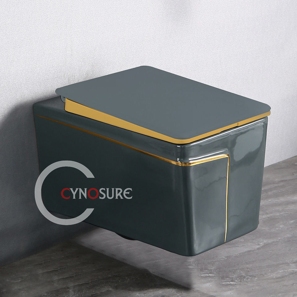 Ensembles de toilette au design moderne, gris avec or, vente en gros, salle de bain, toilette, montage mural, cuvette de toilette