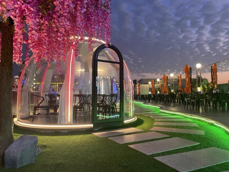 Gazebo à dôme transparent au design moderne, tente de glamping pour hôtels de luxe, pour les fêtes en plein air, salons, événements, serre pliable