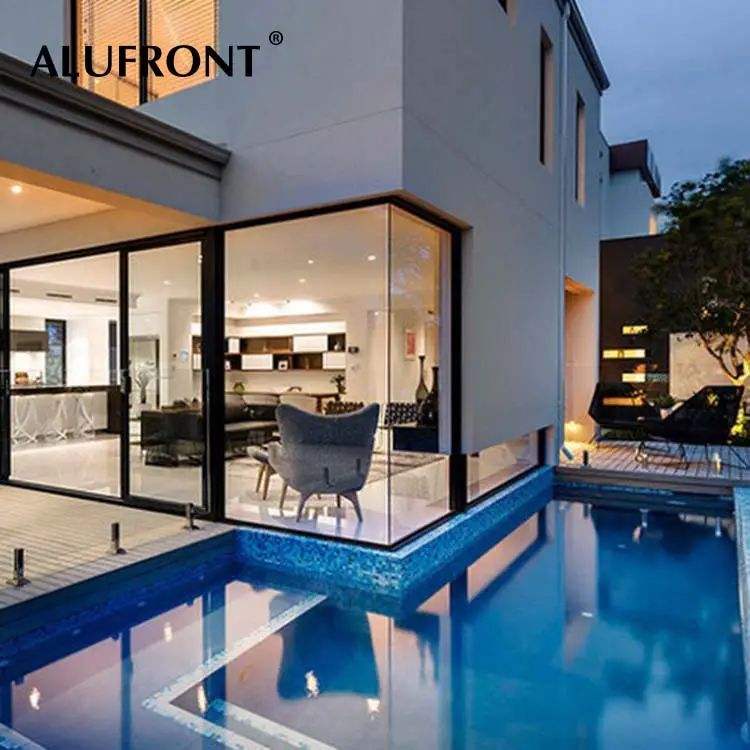 Design moderne Véranda Bay et Bow Glass Fenêtre en aluminium à bas prix Swing Style ouvert avec filet d'écran en fibre de verre pour les villas