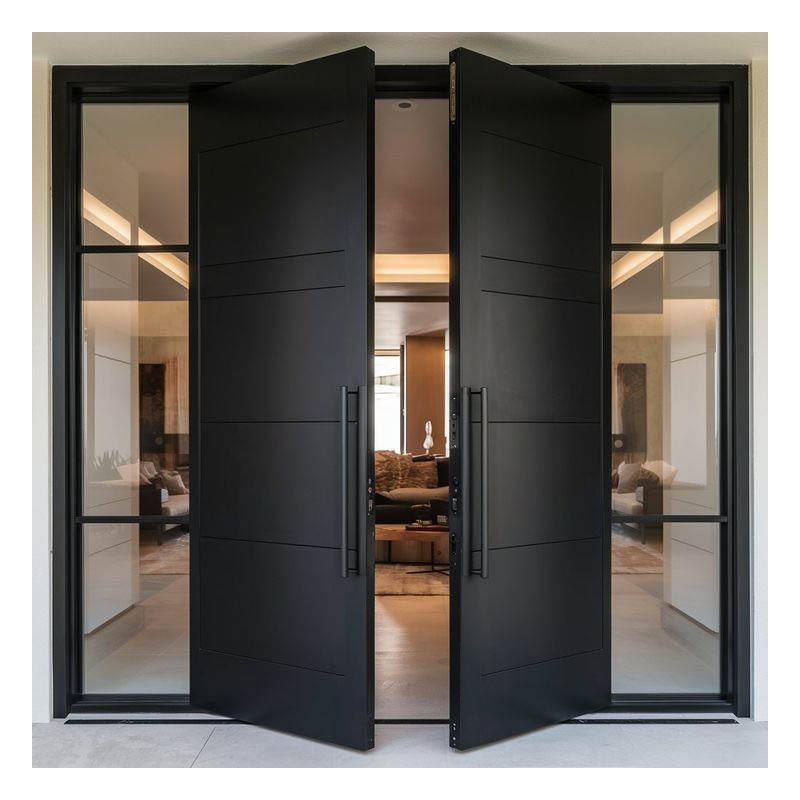 Portes pivotantes d'entrée avant de cadre en aluminium réglable de villas de conception moderne pour l'extérieur