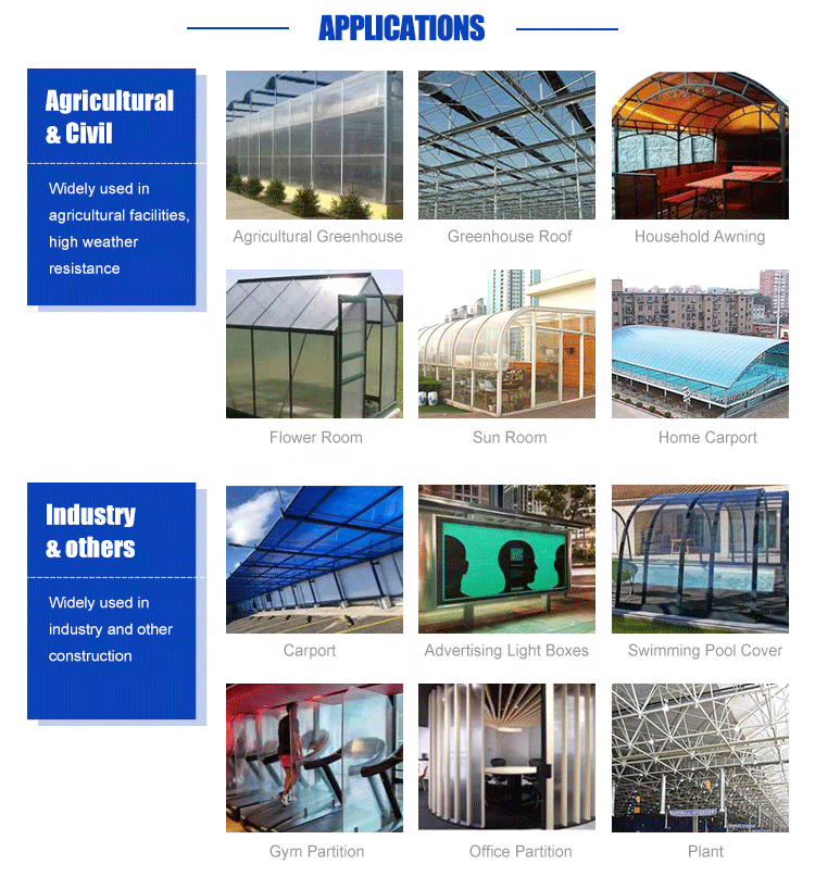 Usage:Roofing of Building,Greenhouse,Skylight,Carport,etc