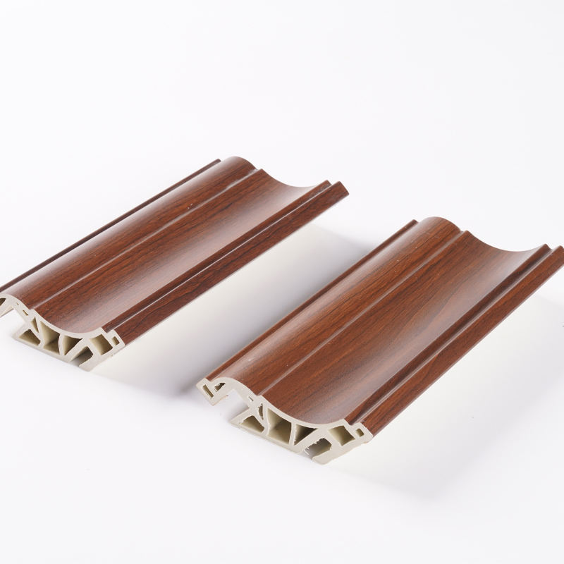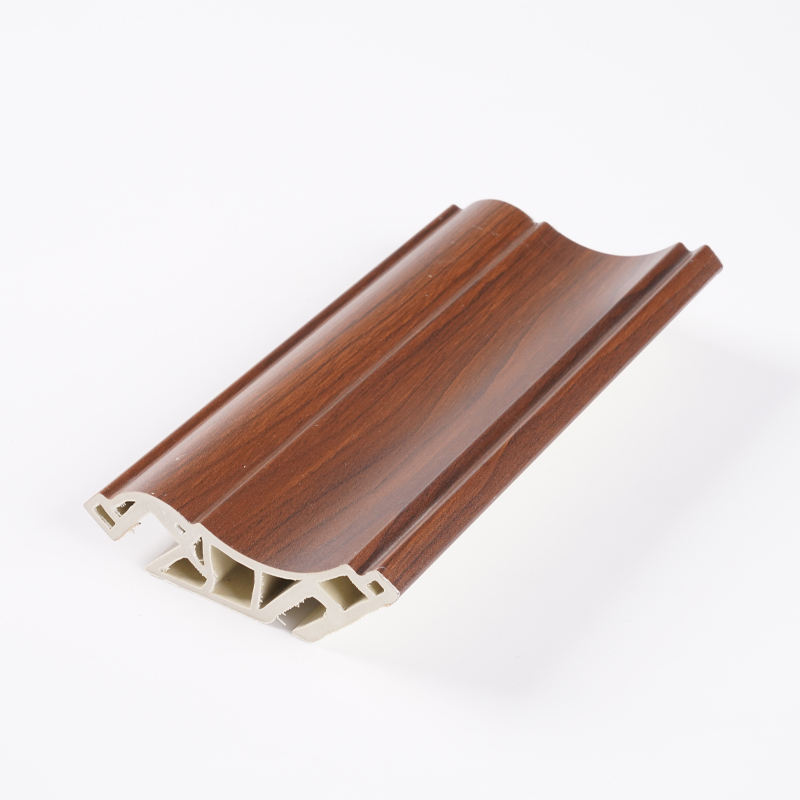 Plinthe WPC au design moderne pour l'intérieur, avec finition grain de bois, ligne de coin supérieure, étanche, écologique, moulures décoratives en PVC