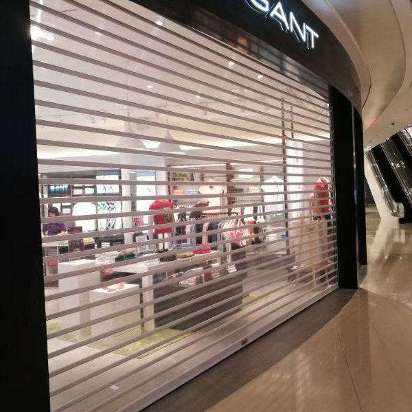 Porte à enrouleur en aluminium avec bande droite en cristal, design moderne, étanche, taille personnalisée, garantie 5 ans