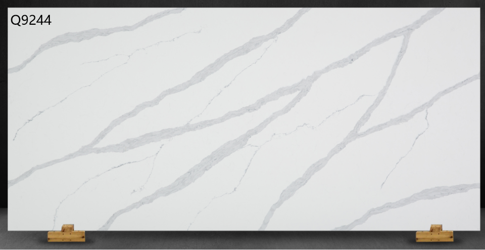 Dalle de quartz blanc au design moderne, pierre de quartz artificielle polie pour plan de travail de cuisine, dessus de table et meuble-lavabo, grande dalle