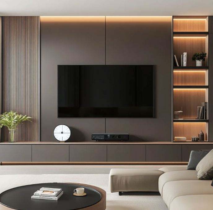 Vente en gros de meuble TV flottant au mur de fond TV LED au design moderne pour meubles de salon