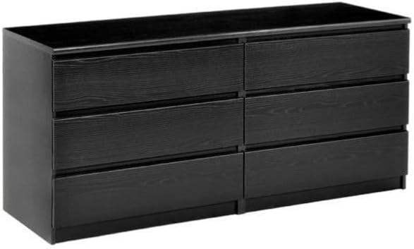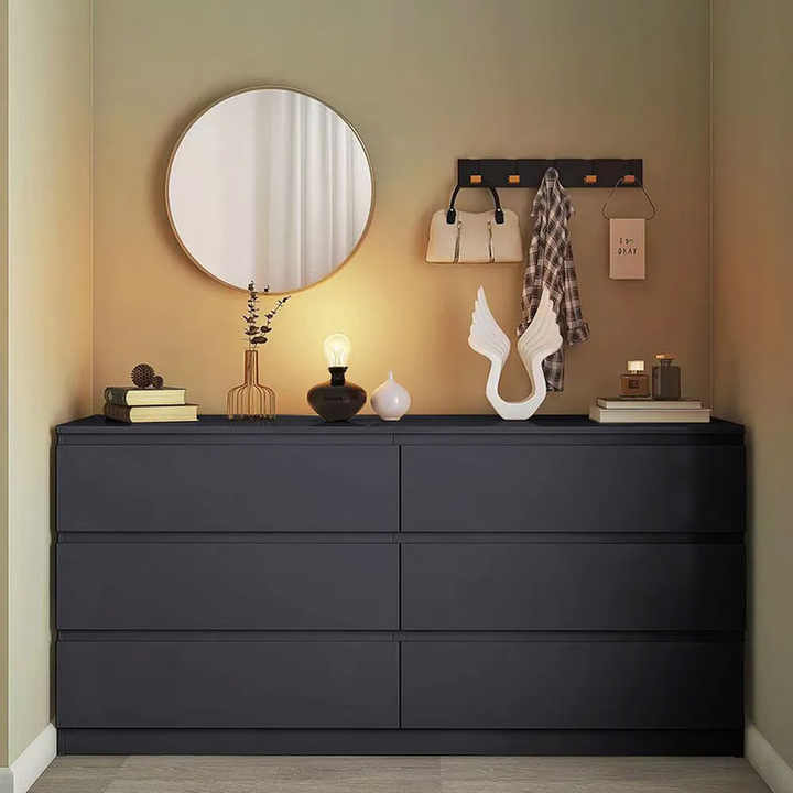 Commode moderne à 6 tiroirs en bois de luxe en rotin noir avec miroir meuble de salon et de chambre à coucher