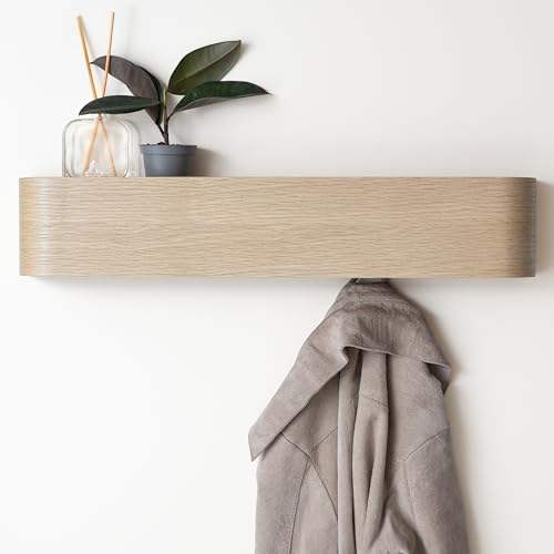 Étagère murale en bois au design moderne avec crochets dissimulés, placage en bois massif, rangement mural