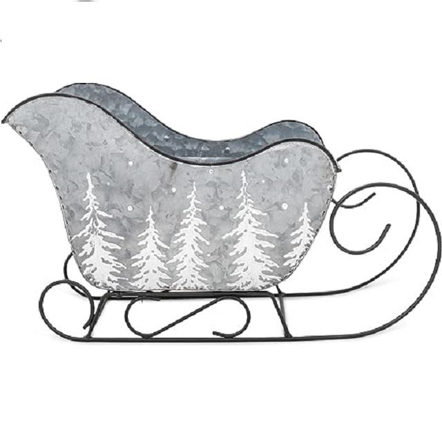 Design moderne métallique en couleur rouge Père Noël Traîneau Occasion de Noël Véhicule décoratif Intérieur Extérieur Ornement debout