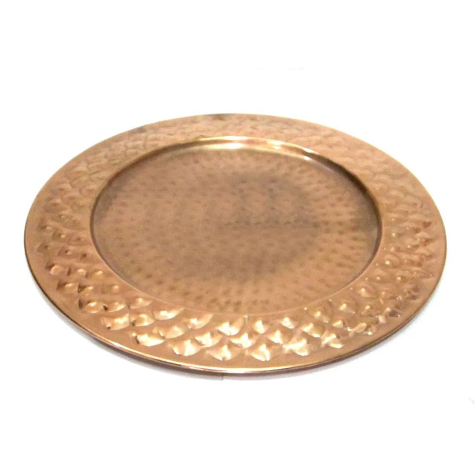 Plateau de service moderne en cuivre martelé, fait main, écologique, en métal, design personnalisable, finition gravée pour