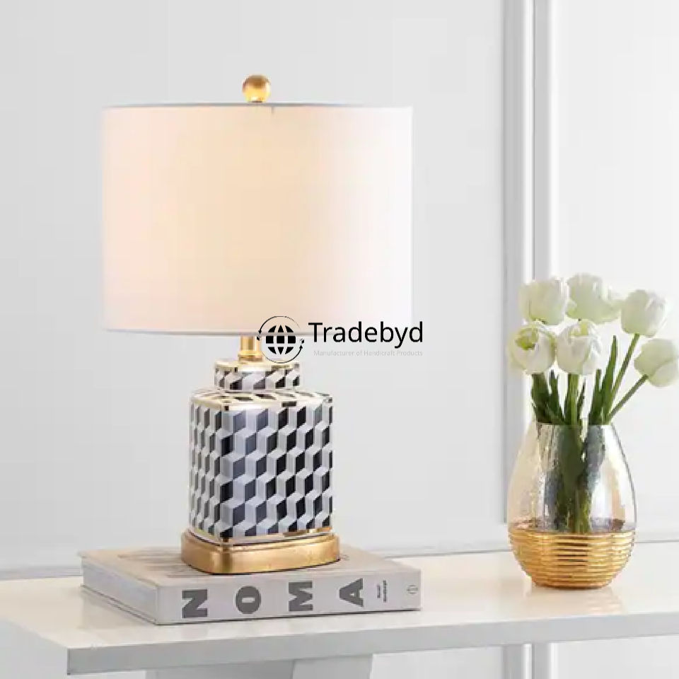 Lampe de table moderne en os incrusté, faite à la main, avec douille E26, alimentation CA, éclairage de luxe Tradebyd
