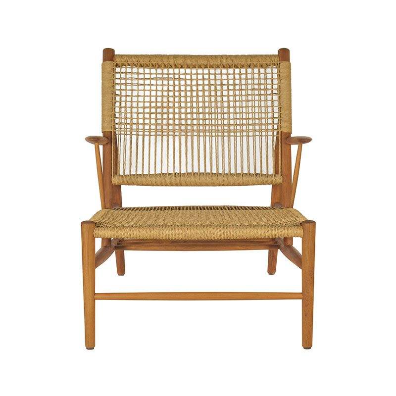 Chaise de jardin moderne en teck et rotin avec dossier en corde tressée, imperméable et écologique, durable et élégante
