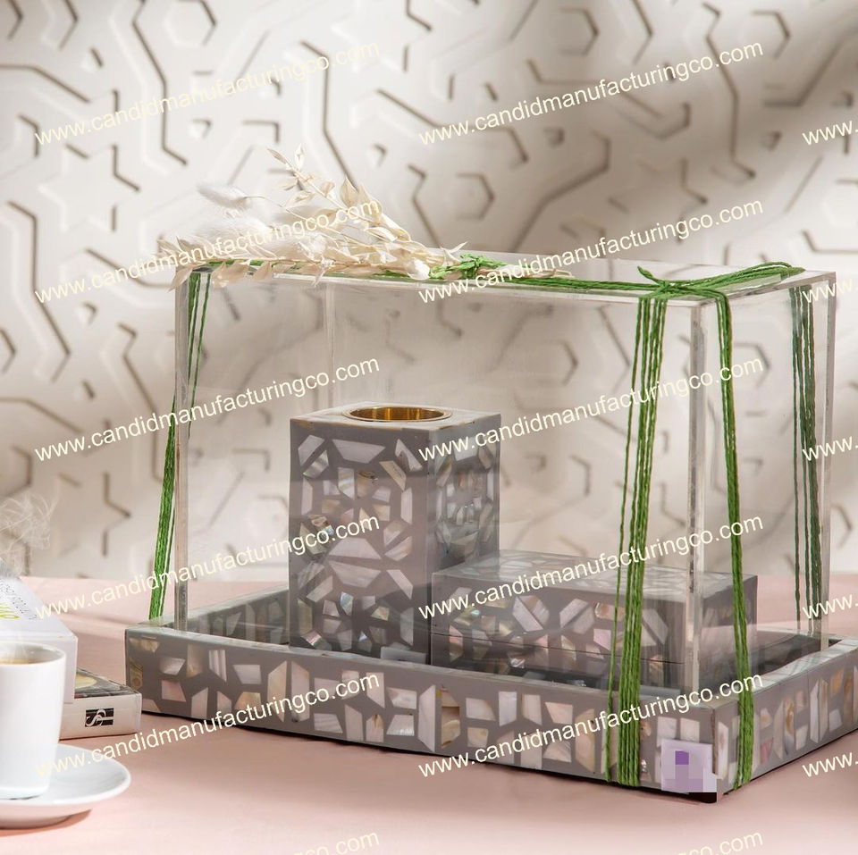 Plateau d'incrustation en bois Plateau de service en incrustation de nacre avec brûleur Bakhoor et boîtes pour les cadeaux