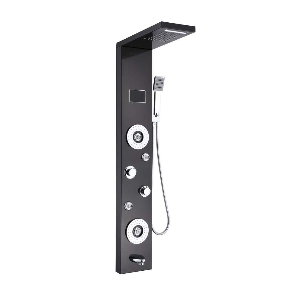 Panneau de douche en acier inoxydable avec cascade murale moderne à affichage numérique Lumière LED Colonne de douche en acier inoxydable 304