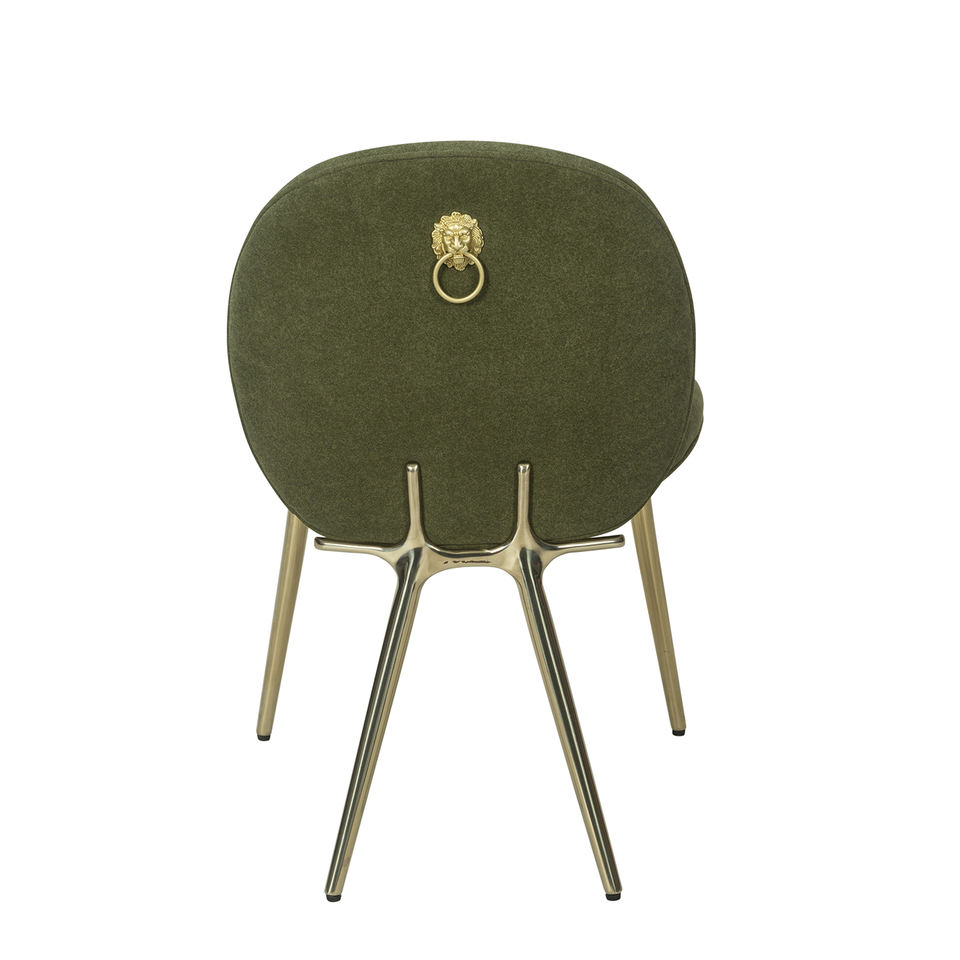 Chaise de salle à manger transparente Lucienne avec coussin rembourré en tissu TREVIRA vert Modèle 19C2005