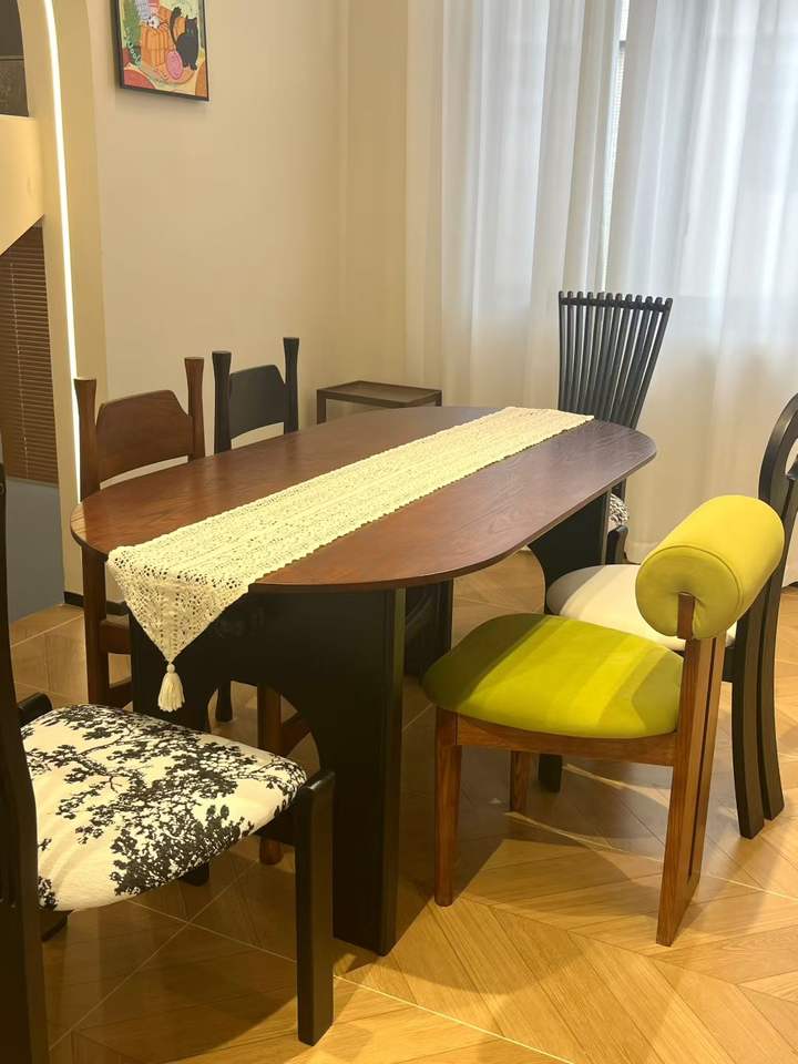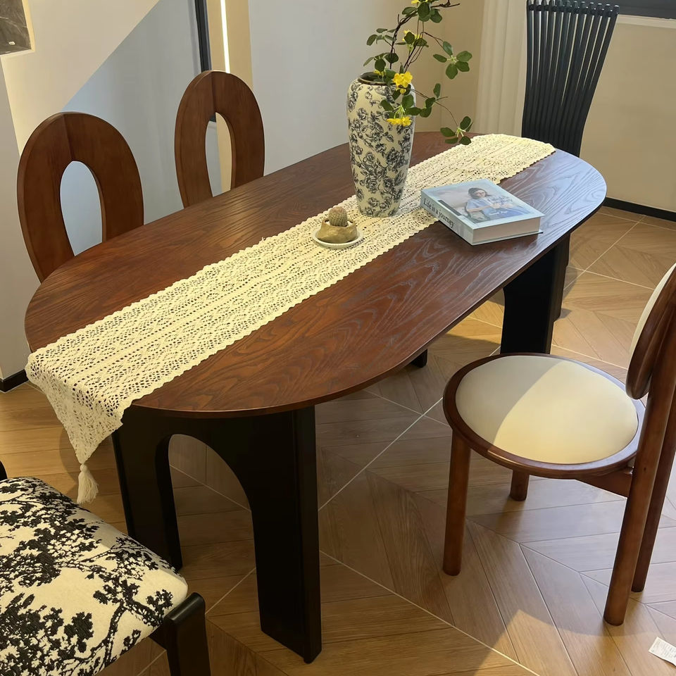 Table à manger moderne, base en bois massif, surface en bois naturel, design minimaliste pour la maison et l'hôtellerie