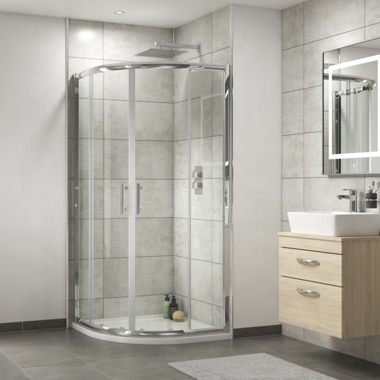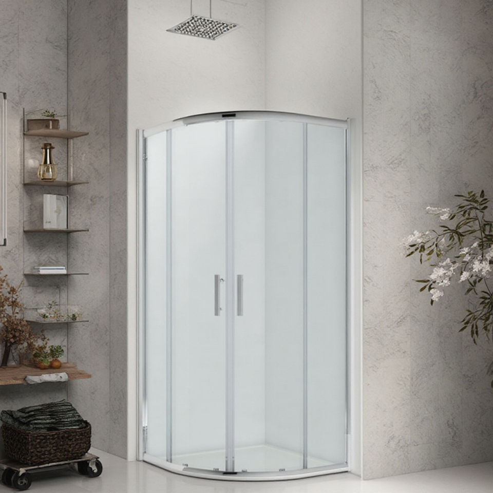 Cabine de douche moderne à double ouverture avec cadre en verre trempé pour chambres d'hôtel