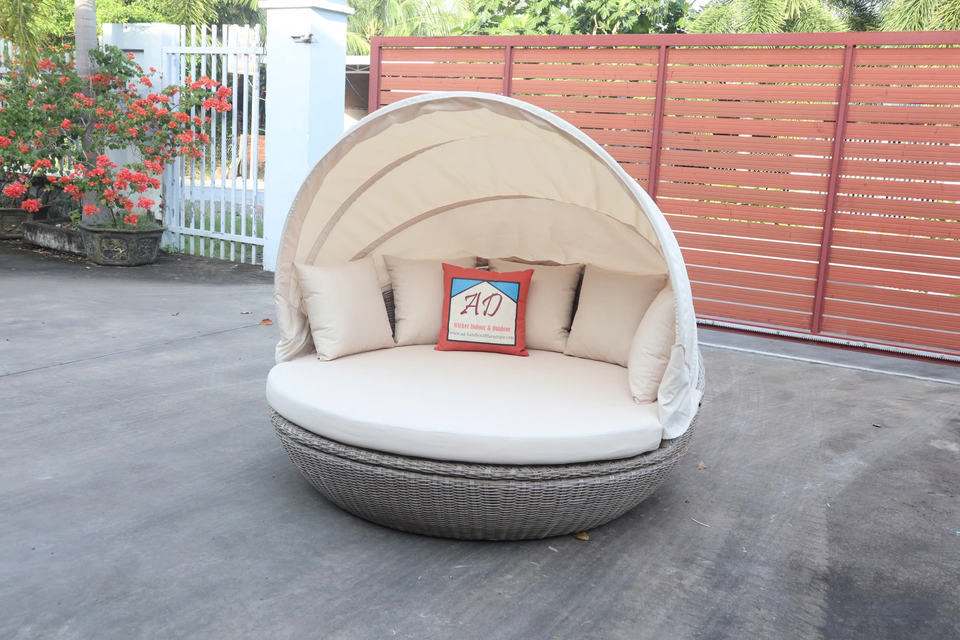 Double chaise longue moderne en poly rotin pour l'extérieur, chambre, piscine, villa, plage, hôtel, rotin en plastique durable
