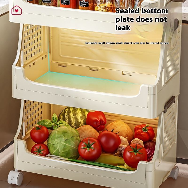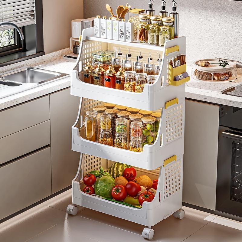Chariot à roulettes moderne à deux niveaux Support de cuisine domestique multicouche Panier de rangement en plastique mobile pour légumes et fruits