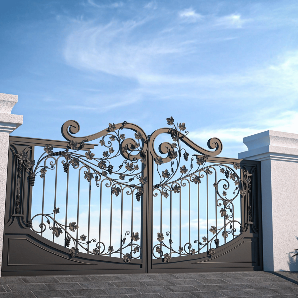 Portails modernes en fer forgé double, portes extérieures forgées à la main pour cour, hôtel, villa, conception personnalisée CAD, modélisation 3D