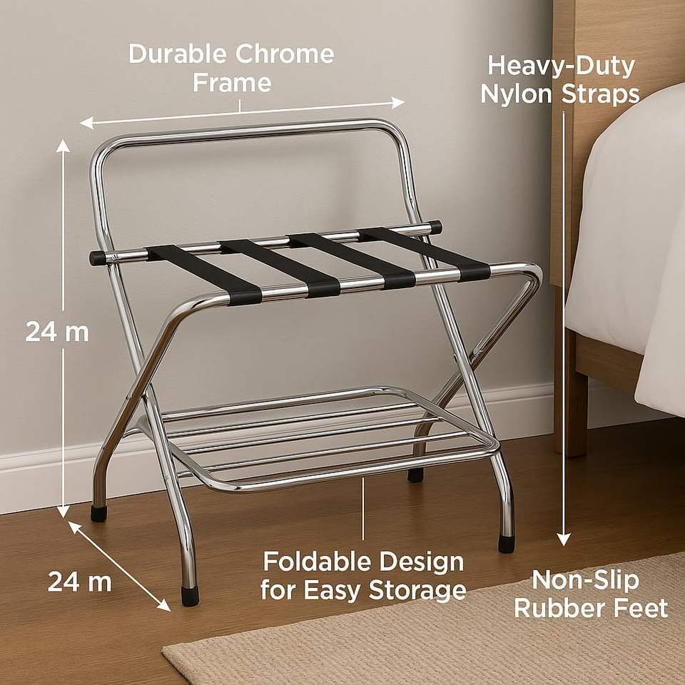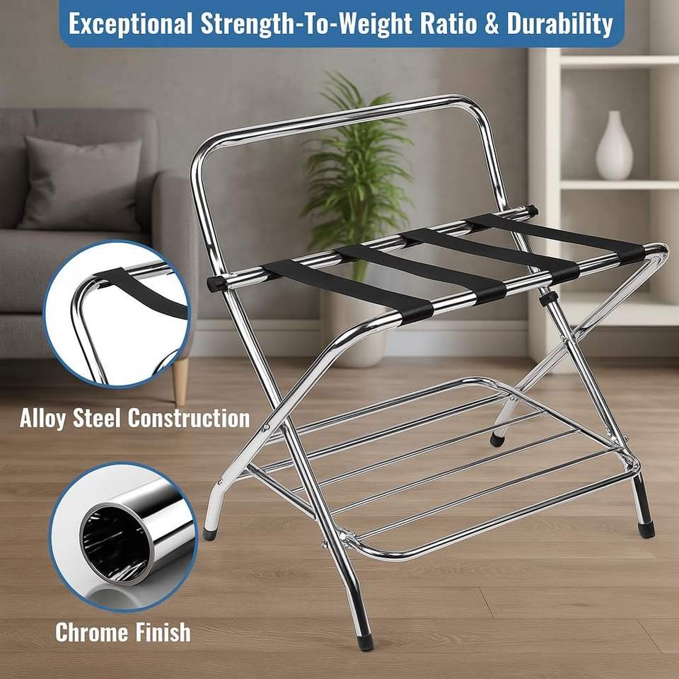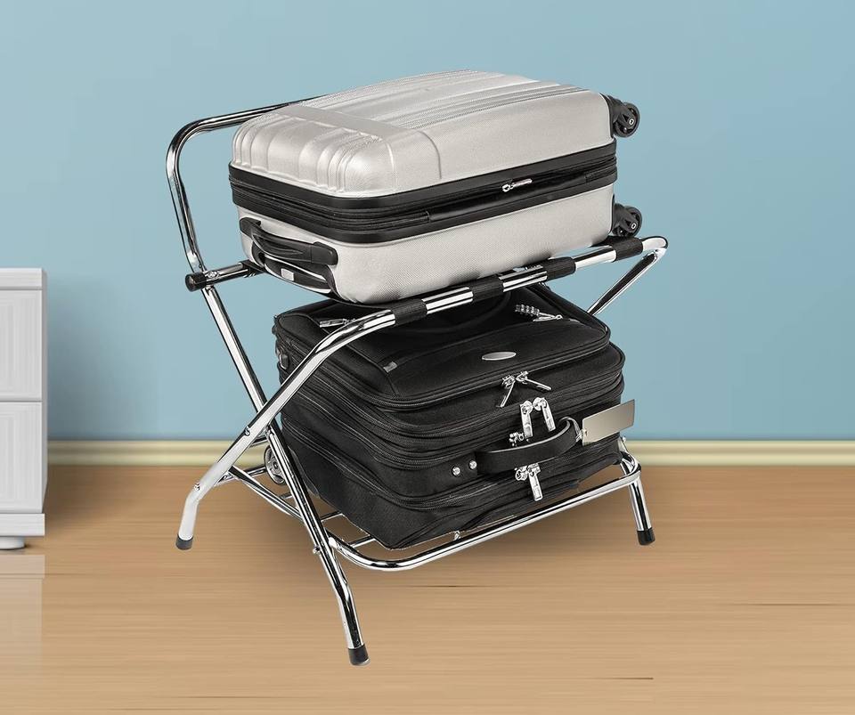 Porte-bagages moderne à double couche, à dossier haut, en métal chromé, pliable, de type debout, pour armoire et chambres d'hôtes