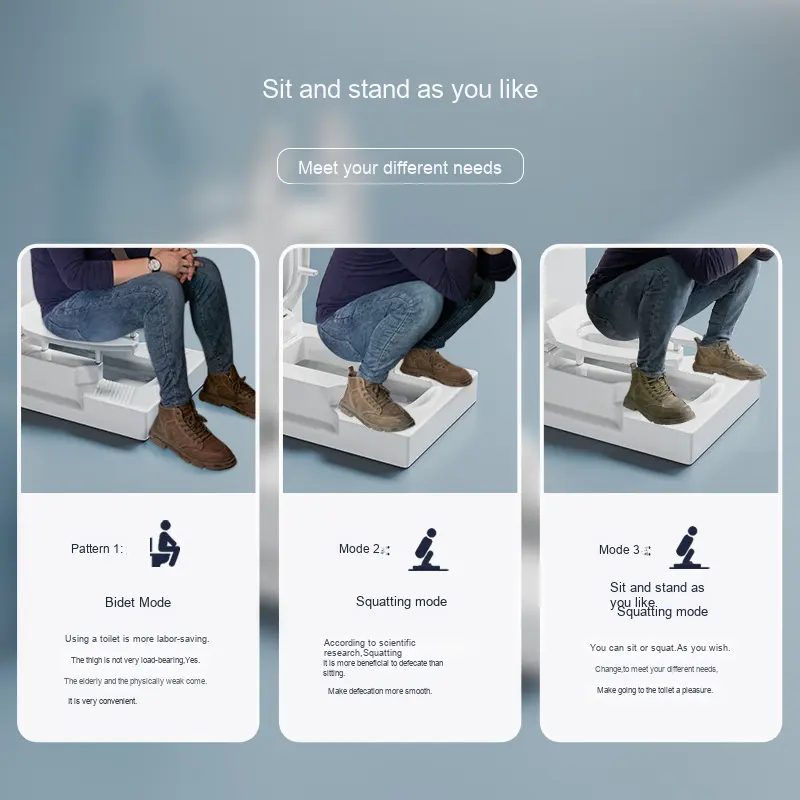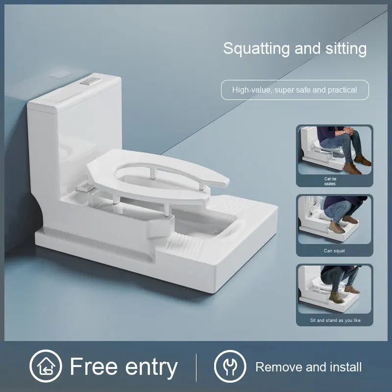 Toilette moderne à double usage à chasse directe, sans perçage, à montage en surface, convertible en toilette à la turque ou à la française pour salle de bain