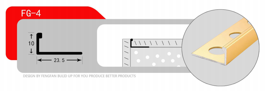 Garniture de carrelage d'angle en aluminium et acier inoxydable