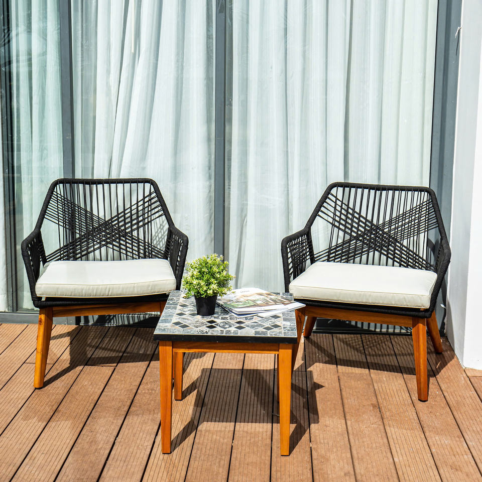 Acier, corde, bois d'acacia, coussinMatériel