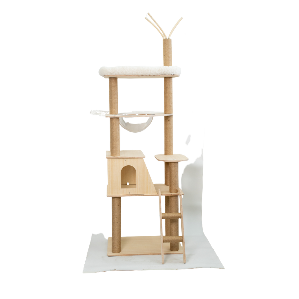 Tour d'arbre à chat moderne et durable en bois massif, tapis de lit confortable en sisal RopeScratcher stocké par la coutume pour Noël