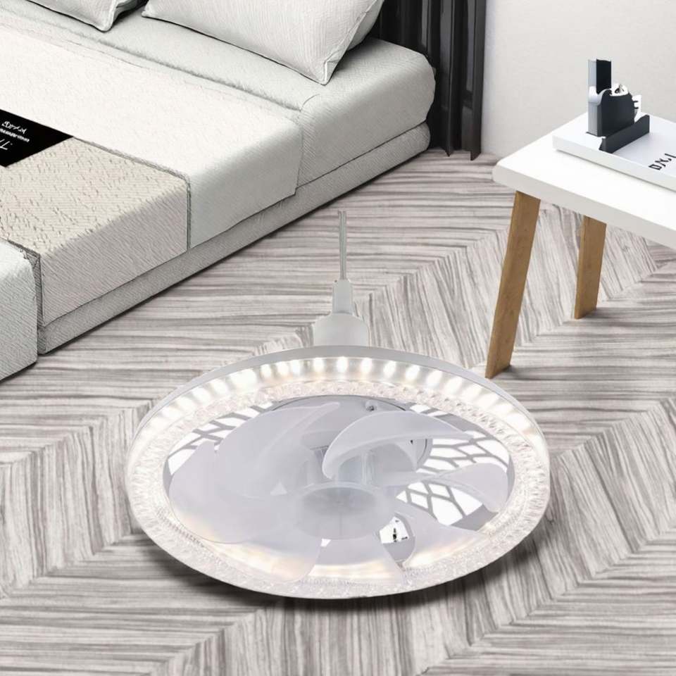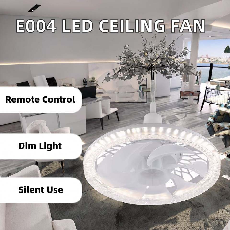Ventilateur de plafond LED moderne E004 avec télécommande, 85-265V, installation facile, lumière blanche à intensité variable, moteur direct, idéal pour les projets domestiques