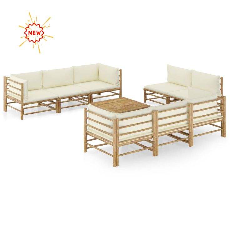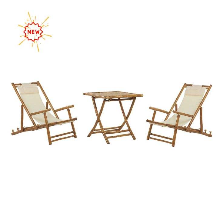 Ensemble de salle à manger moderne écologique en bambou couleur naturelle table et chaise cuisine cour maison jardin décoration style asiatique utilisation événementielle