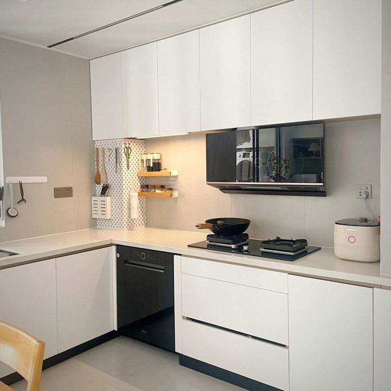 Accessoires:Dosseret, Tiroir panier, Coulisse, Robinet, Poignée et bouton, Charnière, Stockage à plateau tournant, Boîtes de riz, Cabinet de base d'évier, Coup de pied, Conteneur de déchets