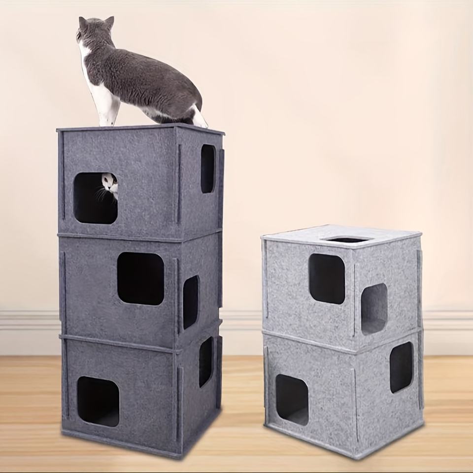 Meubles pour animaux de compagnie écologiques modernes, maison en feutre modulaire empilable pour chat avec plusieurs entrées, montage facile pour chats d'intérieur