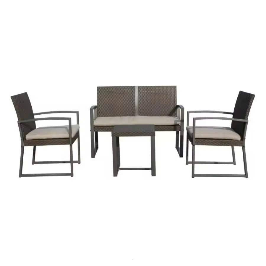 Ensemble de canapés de jardin 5 places en rotin et métal, style ferme, moderne, écologique, durable et confortable, mobilier d'extérieur européen
