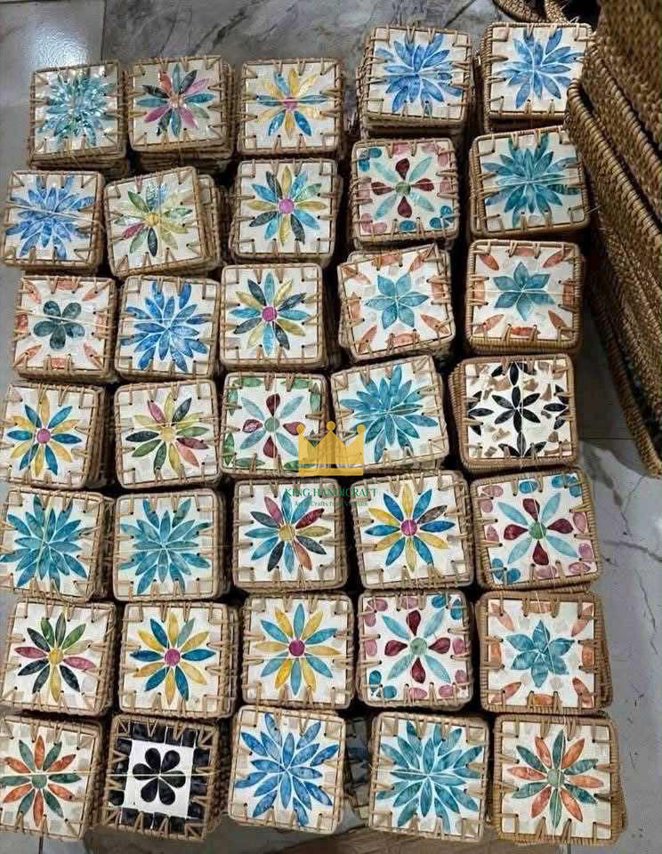 Sous-verre en résine de coquille de rotin naturel coloré, forme carrée, moderne et écologique, tissé à la main, isolant, du Vietnam